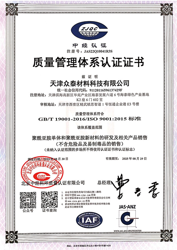 天津眾泰材料科技有限公司(以下簡稱“眾泰”),是一家“以先進(jìn)功能性聚酰亞胺單體研發(fā)生產(chǎn)為核心,致力于推動(dòng)全球聚酰亞胺材料產(chǎn)業(yè)發(fā)展”為使命的創(chuàng)新型高新技術(shù)企業(yè)。眾泰研制的聚酰亞胺單體目前已廣泛應(yīng)用于無色透明柔性聚酰亞胺薄膜、柔性顯示材料、5G新材料等諸多高科技領(lǐng)域產(chǎn)品的生產(chǎn)。